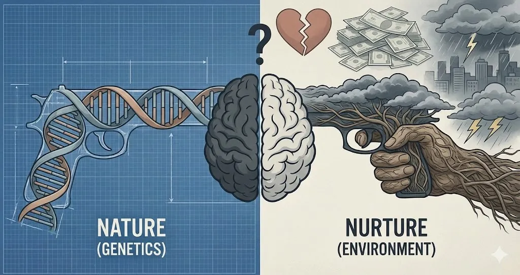 سالها بحث بر سر این بود که آیا بیماریهای روانی ناشی از “طبیعت” (ژنتیک ما) هستند یا “تربیت” (محیط و تجربیات ما). امروزه علم پاسخ میدهد: هر دو. بهترین توصیف برای این تعامل، استعارهی “اسلحه و ماشه” است.