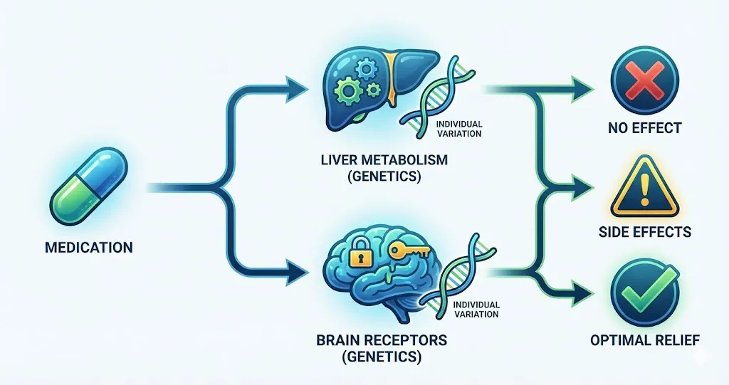 یکی از بزرگترین چالشها در روانپزشکی سنتی، فرآیند خستهکنندهی “آزمون و خطا” برای یافتن داروی مناسب است. ممکن است یک بیمار ماهها دارویی را مصرف کند که هیچ تأثیری ندارد یا عوارض جانبی شدیدی ایجاد میکند. اینجاست که درمان اختلالات روانی با ژنتیک وارد میدان میشود.
