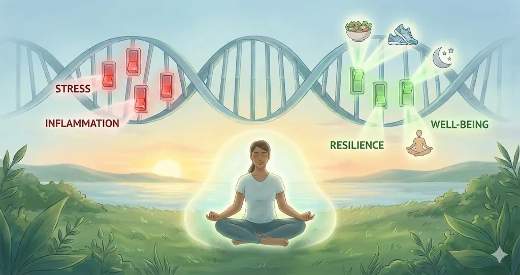 شاید امیدوارکنندهترین بخش علم جدید، حوزه «اپیژنتیک» باشد. اپیژنتیک مطالعهی تغییراتی در بیان ژن است که شامل تغییر در خودِ کد DNA نمیشود. به زبان ساده، ژنهای شما ثابت هستند، اما شما میتوانید با رفتار خود آنها را “روشن” یا “خاموش” کنید.